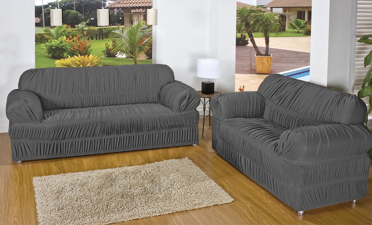 O jogo de capas para sofá é composto por duas peças, sendo para sofás de 3 lugares e 2 lugares. Contém elásticos para melhor fixação e ajuste ao sofá.